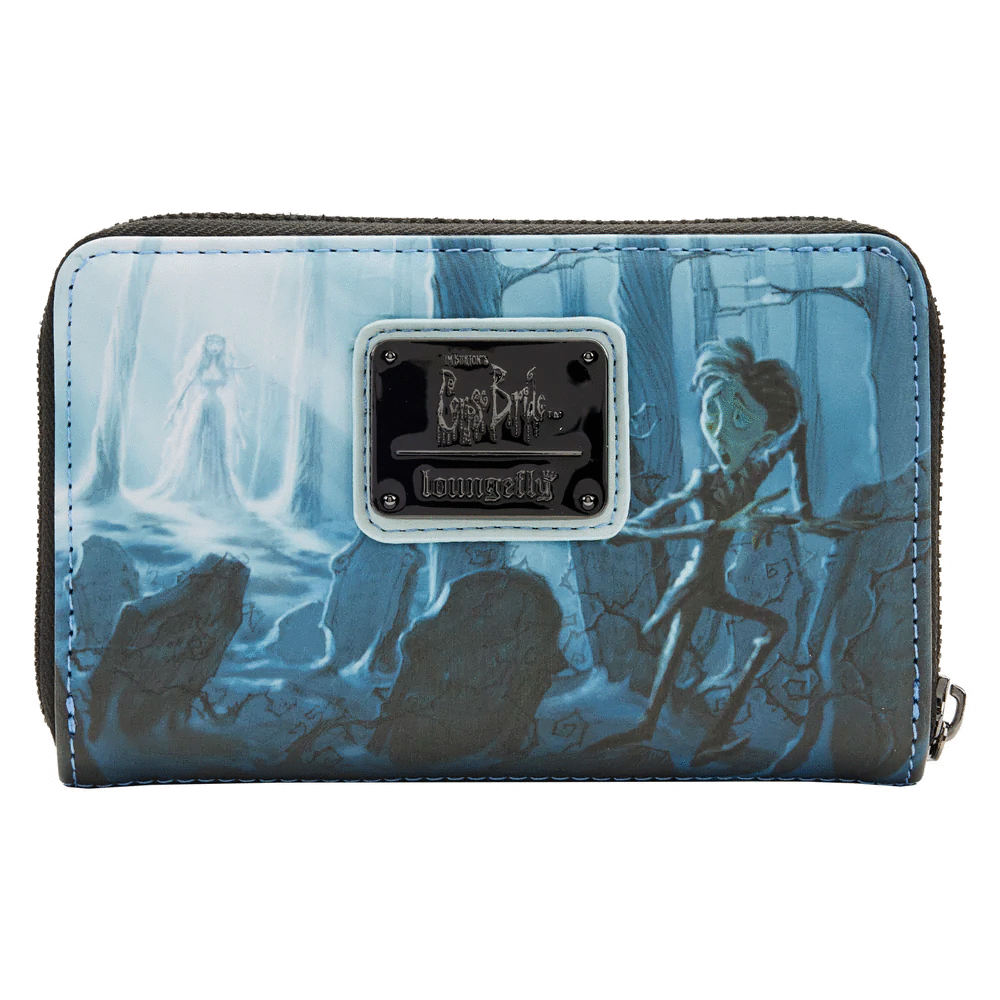 Love can be found even in the strangest of circumstances. The Loungefly Corpse Bride Emily Forest Zip Around Wallet shows a scene from Tim Burton’s 2005 animated film, The Corpse Bride. On the front, Emily walks through the hazy woods while dressed in her wedding gown. On the back, Emily appears to an unsuspecting Victor as he stumbles through a graveyard. With 5 slots for holding cards and a clear slot for holding your ID, this wistful accessory has room to keep all your belongings safe as you travel between worlds.