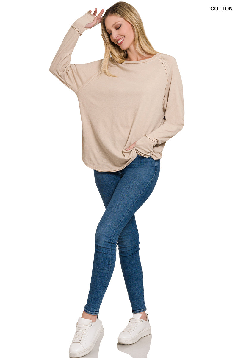 COTTON RAGLAN SLEEVE THUMBHOLE TOP