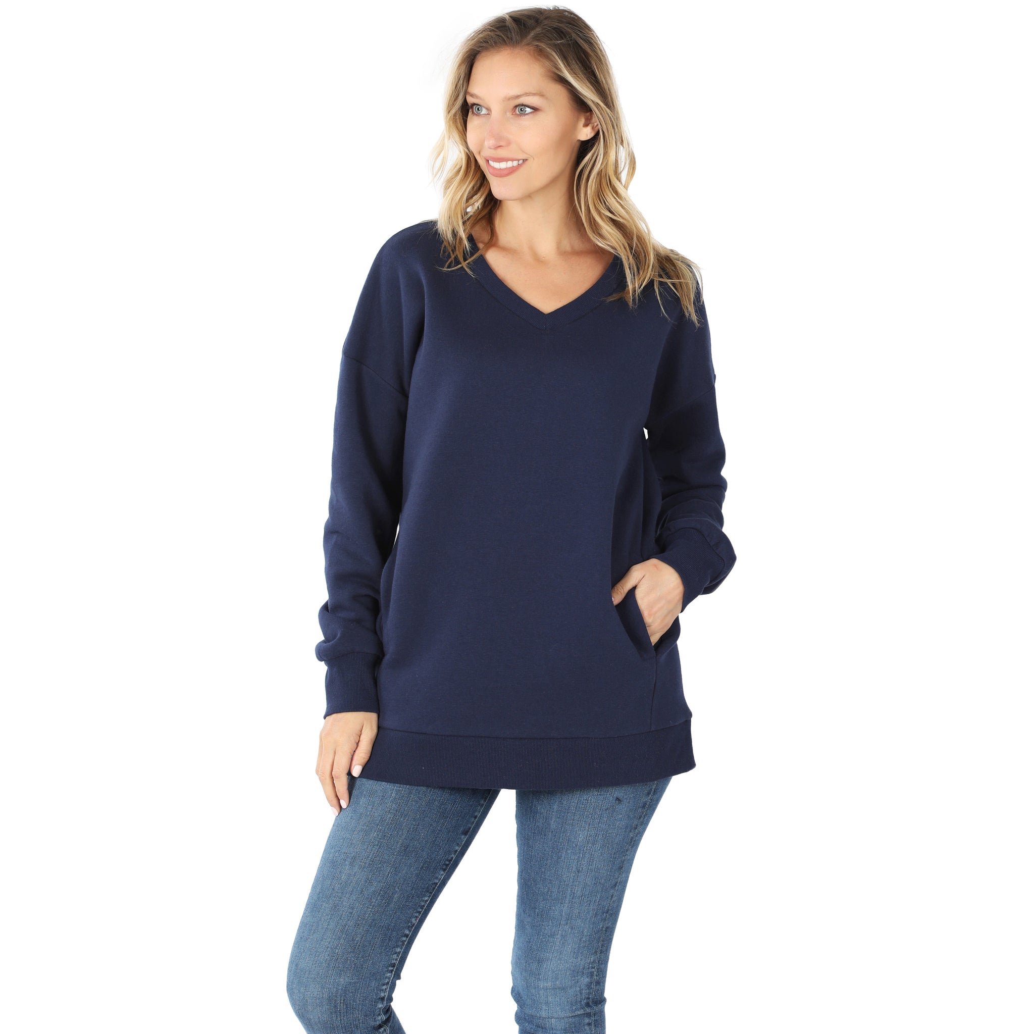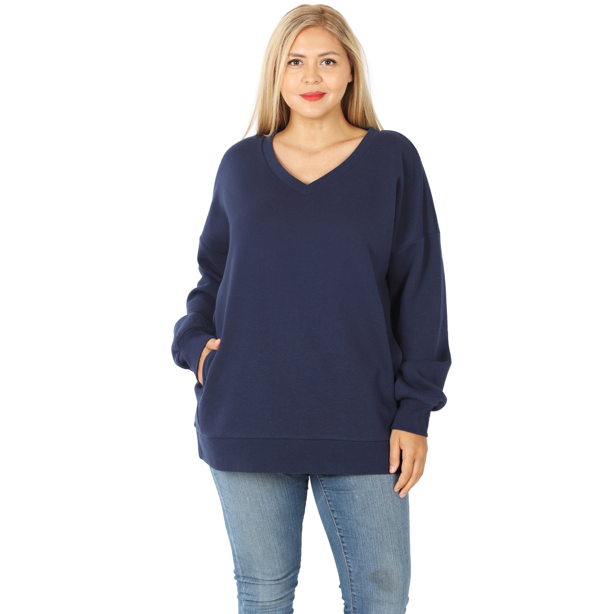 PLUS LONG SLEEVE V-NECK SWEATSHIRT WITH SIDE POCKETS