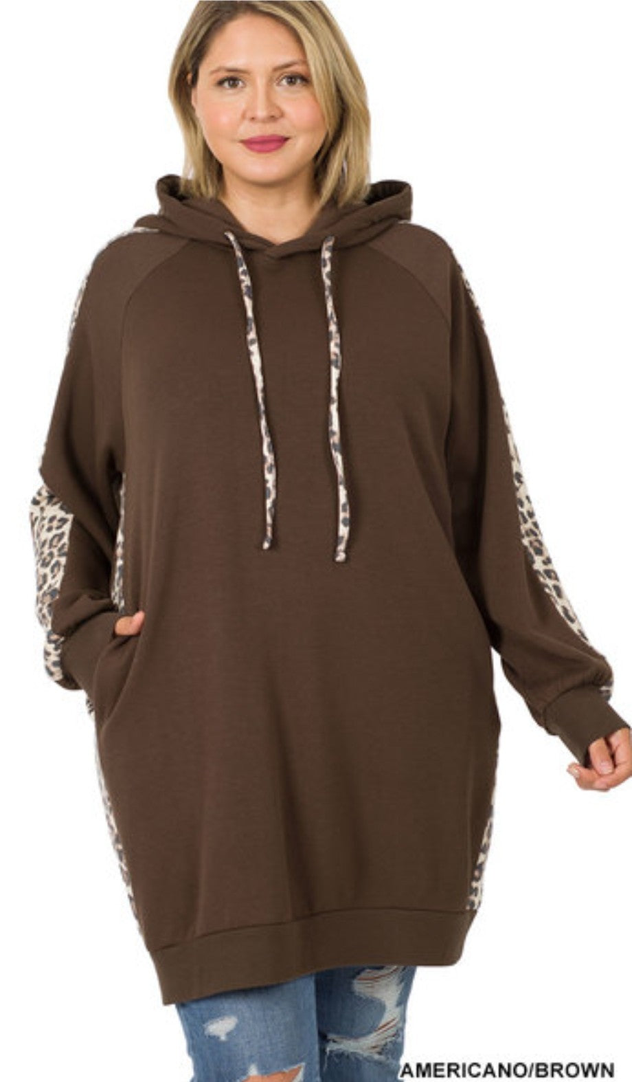 SIDE PANEL LEOPARD SOFT STRETCH HOODIE (AMERICANO)