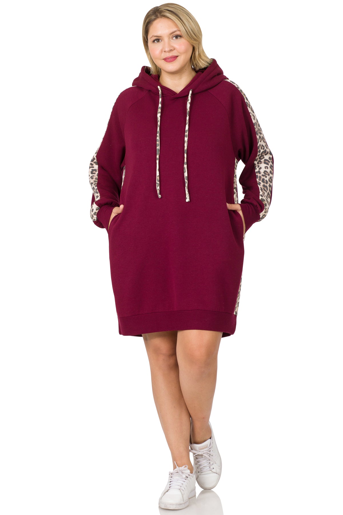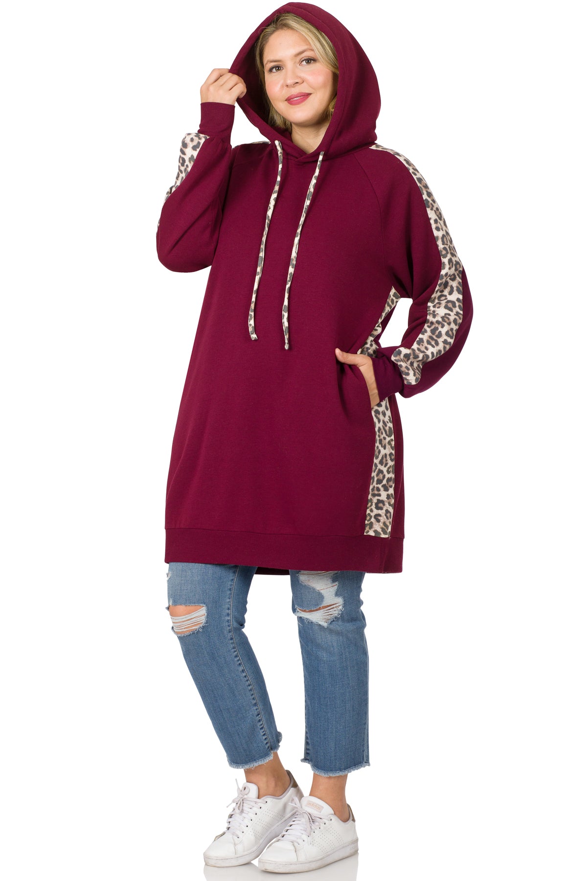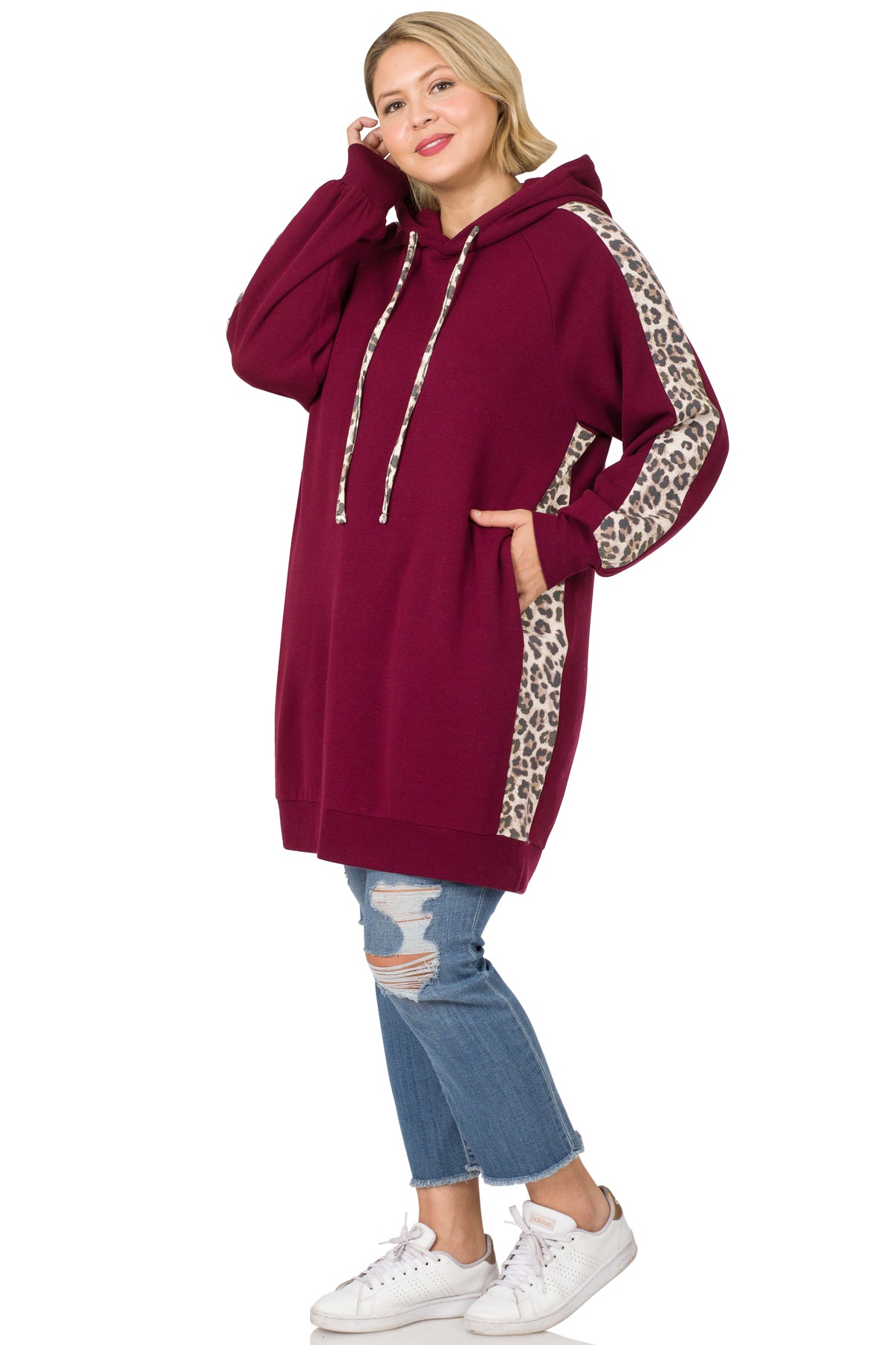 SIDE PANEL LEOPARD SOFT STRETCH HOODIE (DK BURGUNDY)