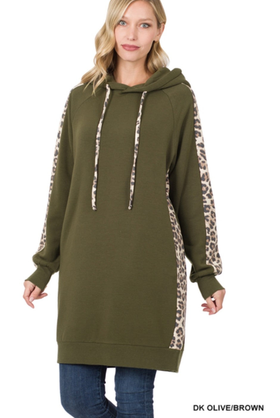 SIDE PANEL LEOPARD SOFT STRETCH HOODIE (DK OLIVE)