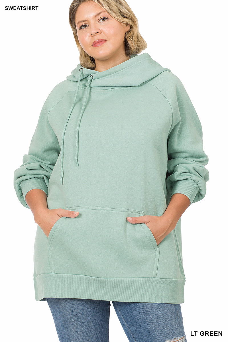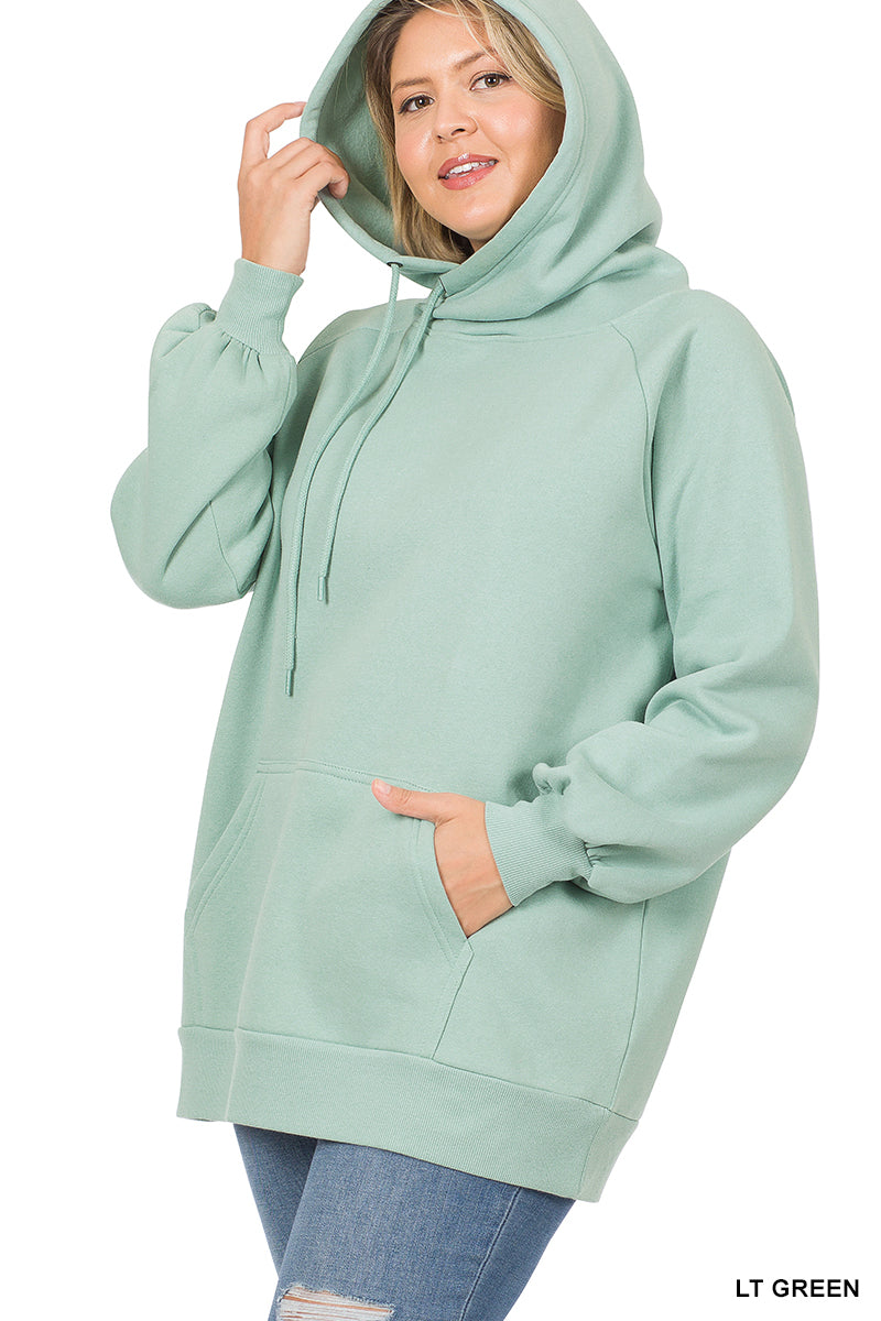 Soft hoodie with side tie. The neck line is a little more open with this side tie option since the hood connects together off to the side.