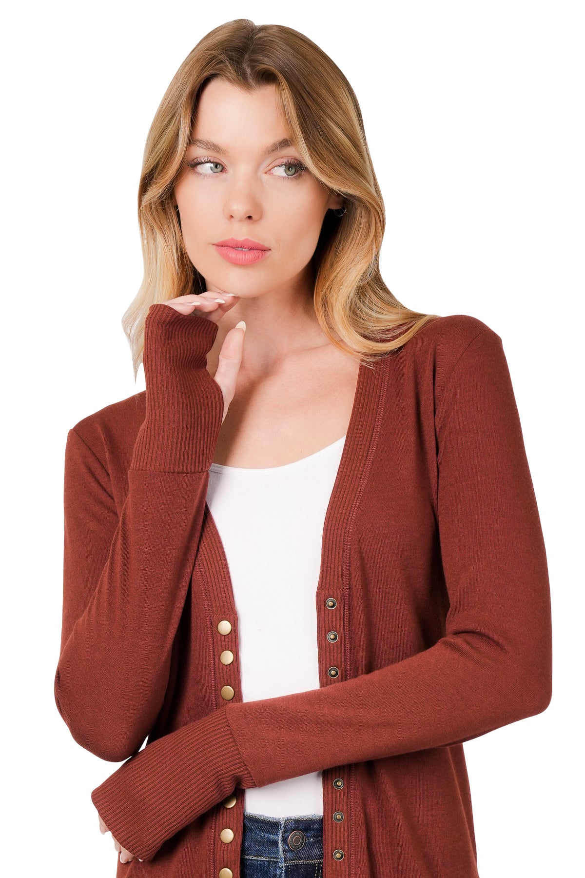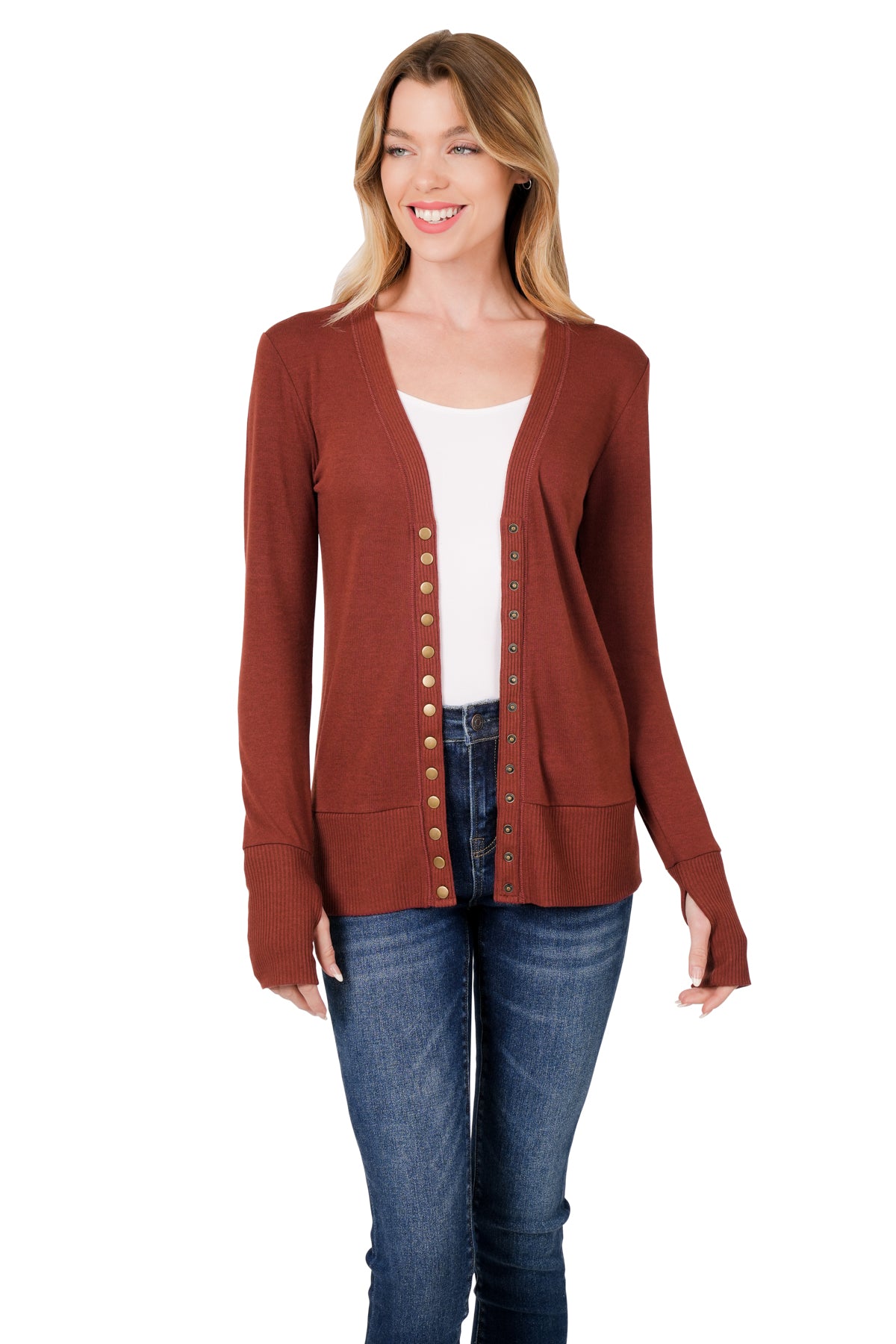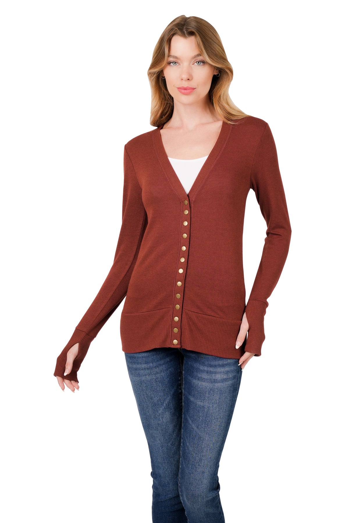 THUMBHOLE SNAP BUTTON SWEATER CARDIGAN (DK RUST)
