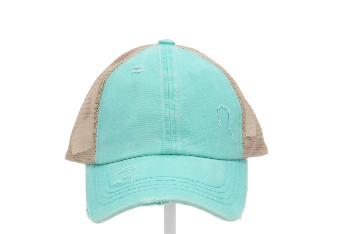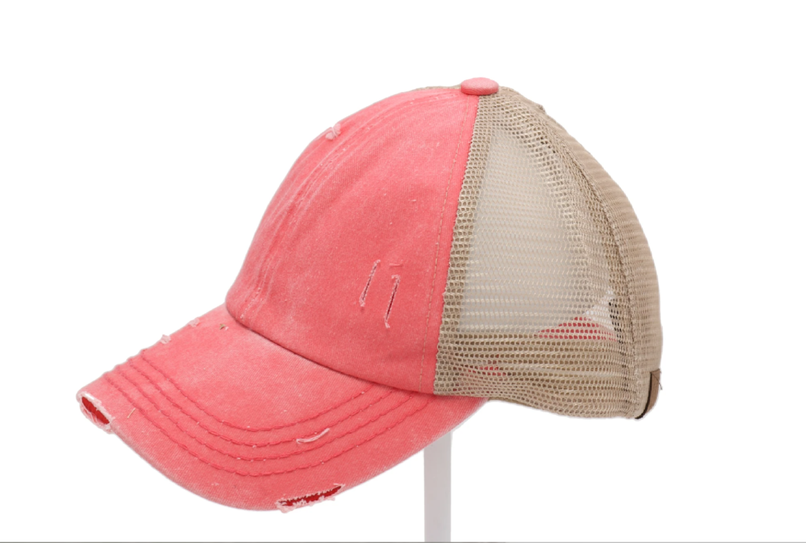 BRAND NEW! This High Ponytail CC Ball Cap is your newest favorite ball cap! It features an ALL NEW HIGH PONY criss cross design allowing you to wear your pony at varying level with a trendy twist!